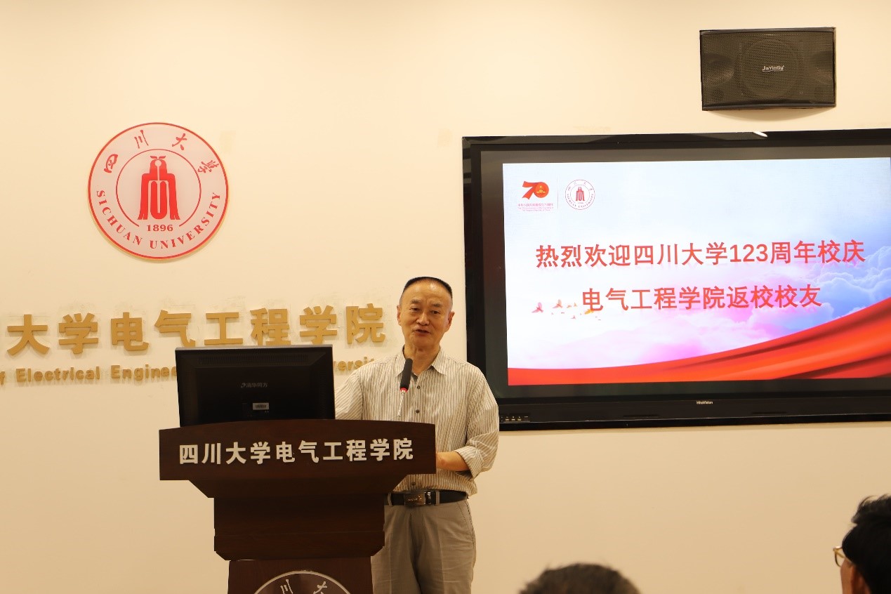 随后,63级电机电器制造专业付肈宾、63级发输配专业张泽元、65级电机电器制造专业余顺东3位员工代表先后致辞。他们向为校庆精心筹备、周到安排、热心服务的学院领导、老师和同学们表示衷心的感谢,表达了作为川大学子感到无比自豪和光荣,感谢母校给他们带来智慧学识、拼搏的力量、做人的原则和奋斗的方向,为祖国、母校、母院的发展壮大他们喝彩点赞。为了感谢母校,他们倾情献给母校一首小诗: