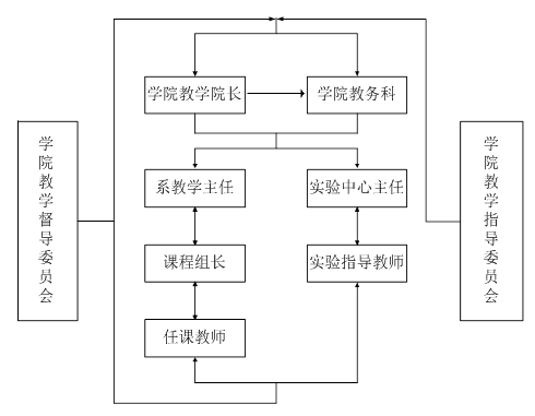 公司根据自身特点和实际情况制定了院、系三级质量监控机制,以加强教学管理,监控机制构架如下图:
