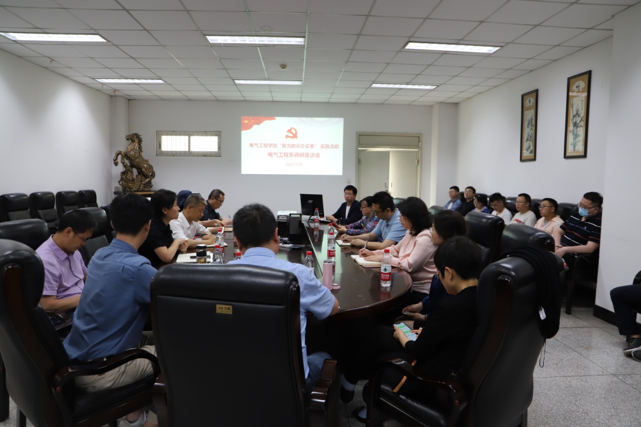 近期,公司党史学习教育“我为群众办实事”实践活动扎实开展,继深入电工电子基础教学实验中心调研之后,5月14日,学院在A220会议室继续召开“我为群众办实事”电气工程系调研座谈会。学院全体领导班子到会调研,电气工程系领导班子、教师代表、青年教师代表近50位老师参加座谈会,会议由系党支部书记陈实主持。