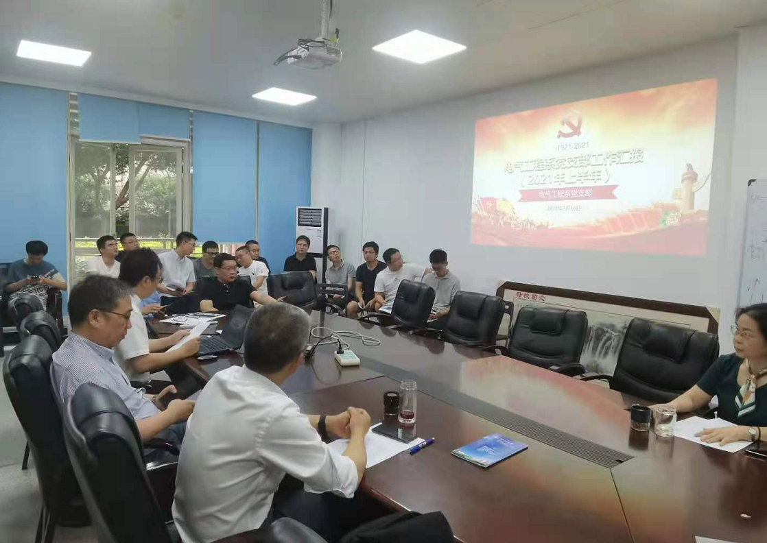 会议开始,陈实书记对电气工程系党支部2021年上半年的工作尤其是开展党史学习教育的情况进行了汇报。他回顾了党支部开展党史学习的过程,从学史明理到学史力行,电气工程系全体党员老师们始终围绕全面加快中国特色社会主义一流大学和学院一流学科专业建设开展工作。党支部也围绕此目标开展了系列专题活动,例如:邀请优秀党员代表上党课;前往绵阳两弹城,开展缅怀先烈活动;重温百年党史知识竞赛选拔活动等等。陈书记号召全体党员以先进个人为榜样在活动中进行学习实践。