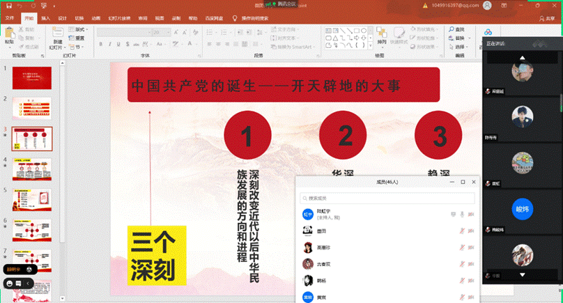 hy3380cc海洋之神本科2020级自动化专业第二团支部在中秋假日期间以“云上”的方式、借助“腾讯课堂”进行了宣讲活动,并鼓励同学们以宿舍为单位参加会议以便及时交流讨论。同学们首先观看了“庆祝中国共产党成立一百周年大会”视频,并认真学习了习近平总书记“七一”重要讲话内容。班级团支书对相关微团课进行了详细讲解,集中展示了同学们创作的优秀文创作品。