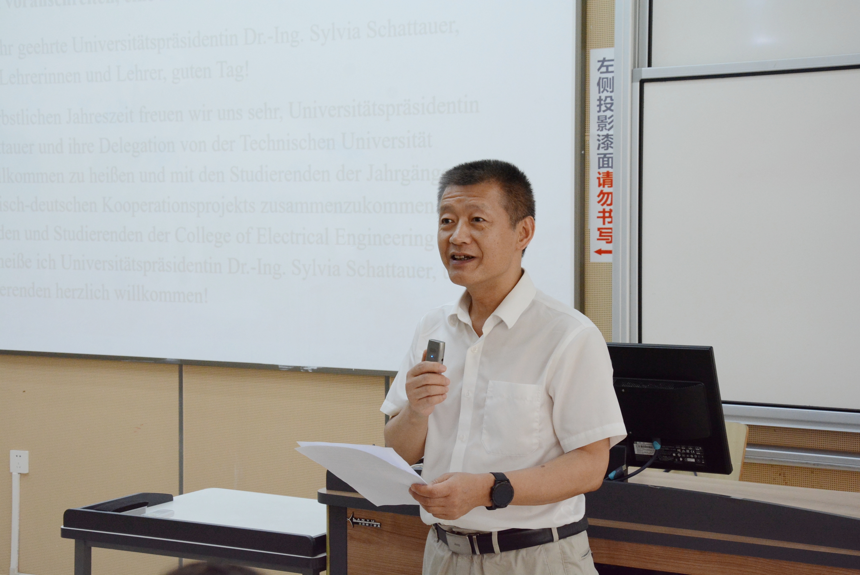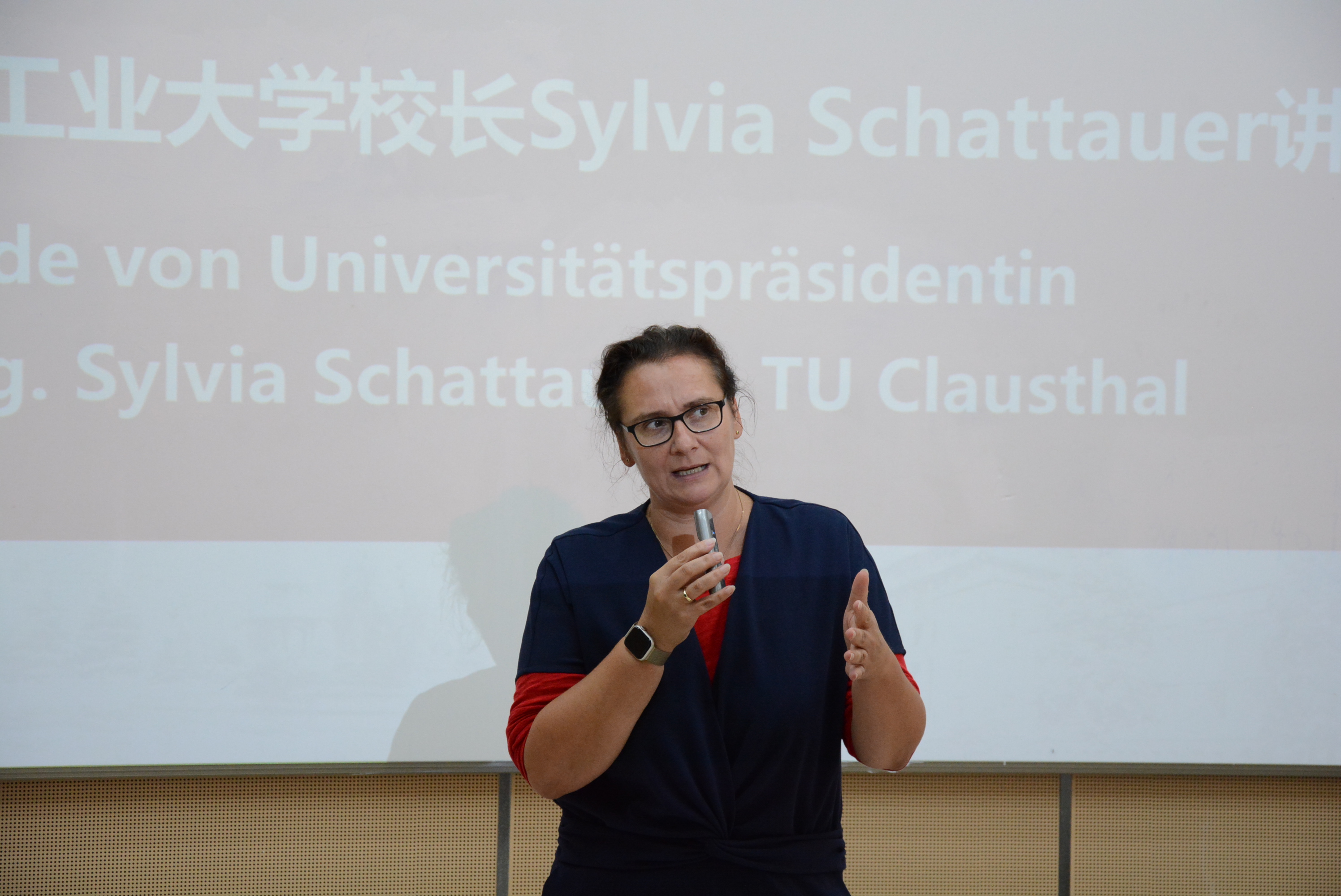 随后,克劳斯塔尔工业大学董事长Sylvia Schattauer女士发表了讲话。她强调了中德两校合作的重要性,高度赞扬了中德班员工的学术表现和积极态度,并表示期待同学们在第三学年赴克劳斯塔尔工业大学学习。Schattauer女士鼓励员工们充分利用这一宝贵机会,在学术和个人成长方面取得新的突破,并指出:“你们是未来的栋梁,将推动全球电气能源行业的创新发展。”