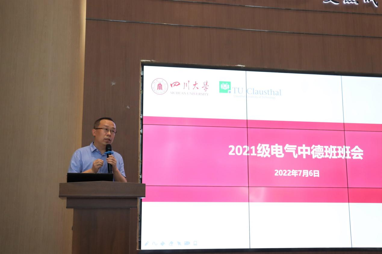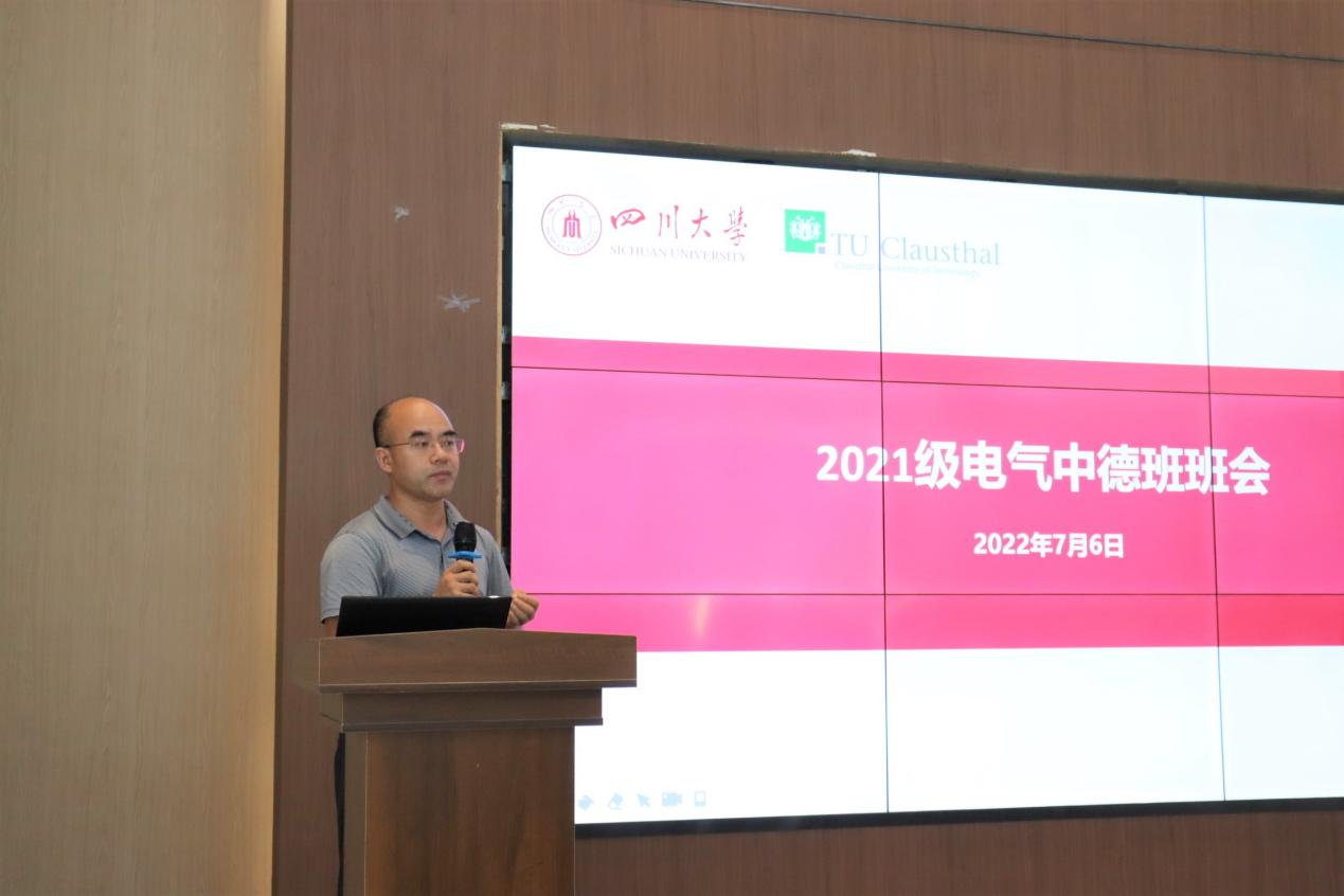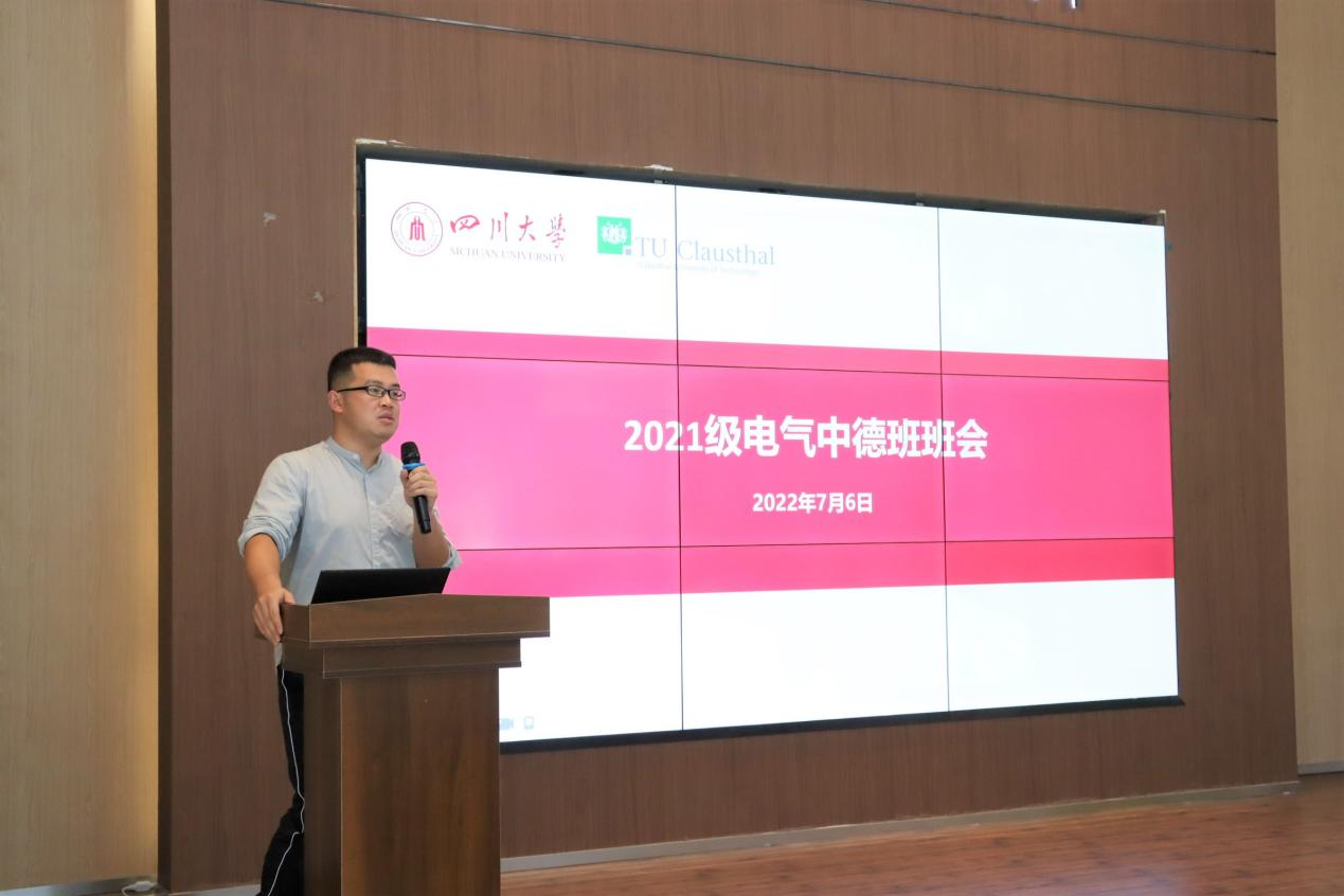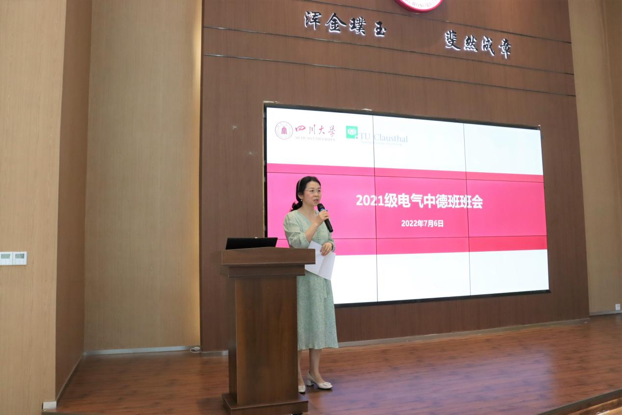 2022年7月6日下午,hy3380cc海洋之神2021级中德班2022春季学期期末主题班会在江安校区玉章书院大礼堂顺利举办。hy3380cc海洋之神党委副书记兼纪委书记张英敏、副经理李长松、经理助理陈实、电气工程系党支部副书记刘亚梅、电气工程系副主任钟俊以及中德合作办学项目行政管理及辅导员老师于孜清、朱愉田、张灿、严方舟、杨振尧共同参加了本次班会。本次班会由中德合作办学项目辅导员朱愉田主持。