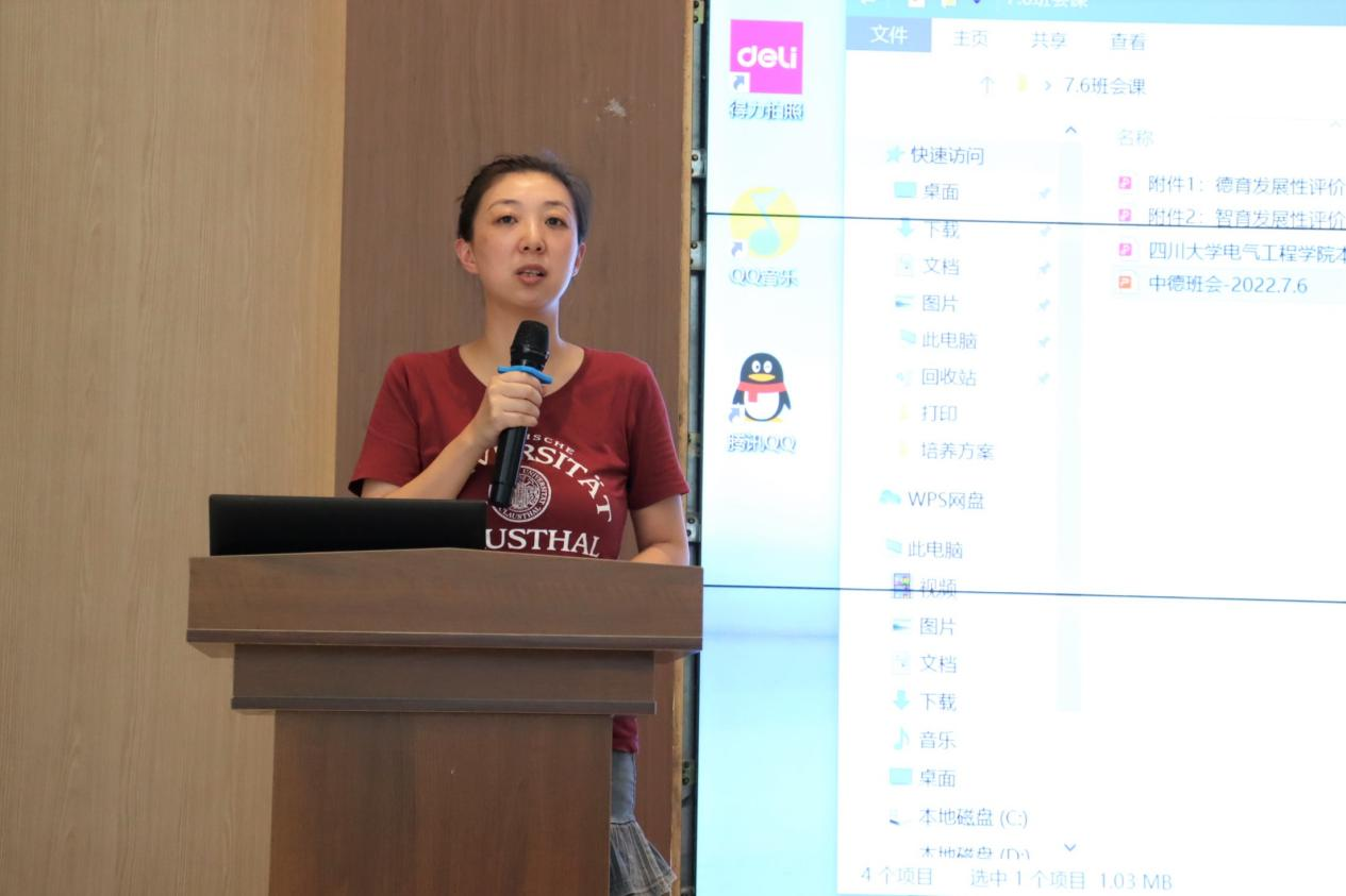 最后,中德合作办学项目辅导员于孜清为同学们讲解了本科生综合素质评价体系,希望同学们在刻苦学习的基础上,注重自身德、智、体、美、劳全面发展,鼓励同学们积极了解评奖评优和保研等政策,做好个人规划,共同打造良好的班风和学风。