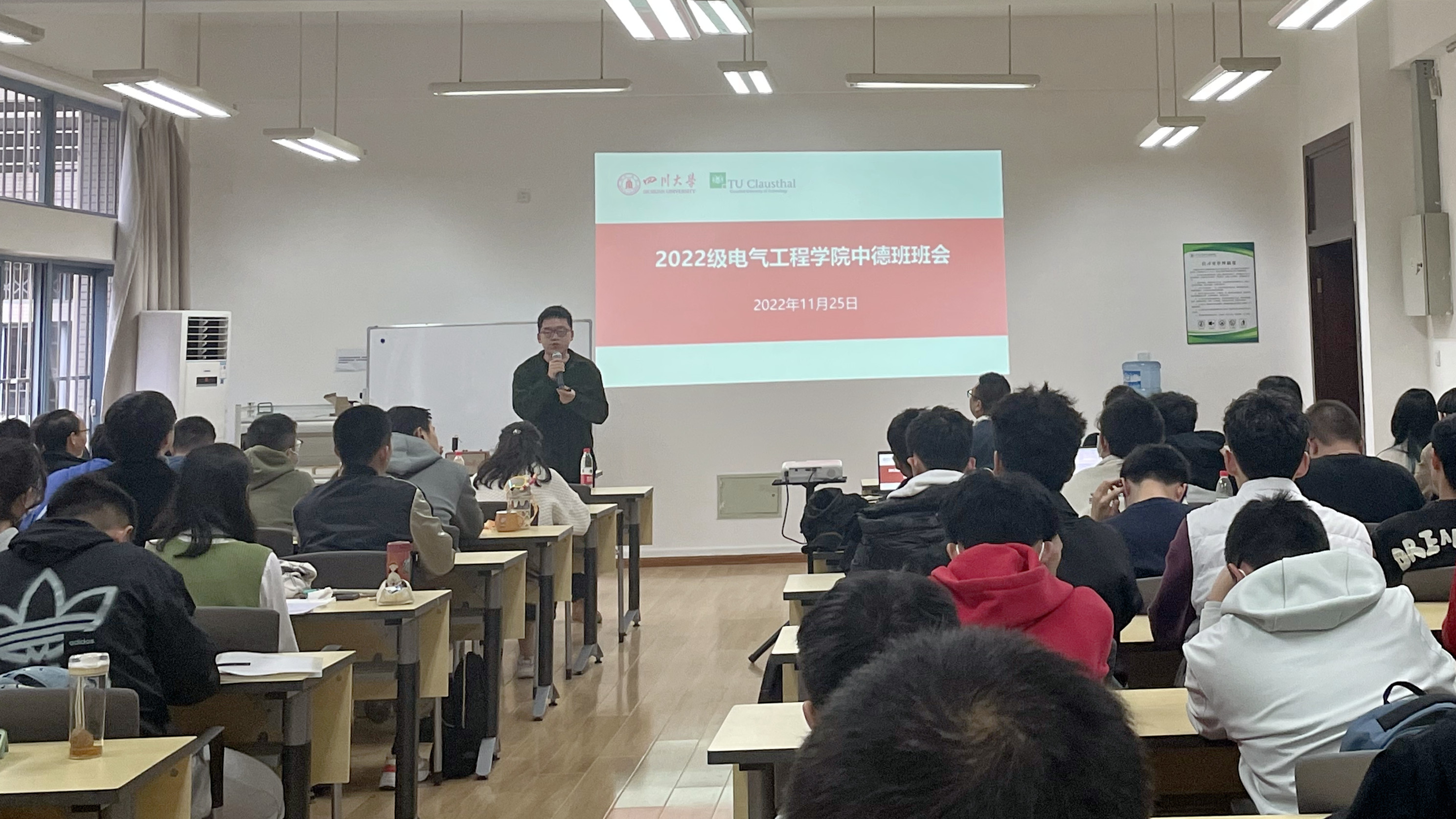 2022年11月25日下午,公司2022级中德班师生见面会在江安校区二基楼B103教室顺利举行。hy3380cc海洋之神经理助理陈实,2022级中德班班主任黄勇、魏震波,中德项目辅导员及行政管理老师于孜清、朱愉田、张灿及2022级中德班全体员工参加了本次活动。本次见面会由朱愉田主持。