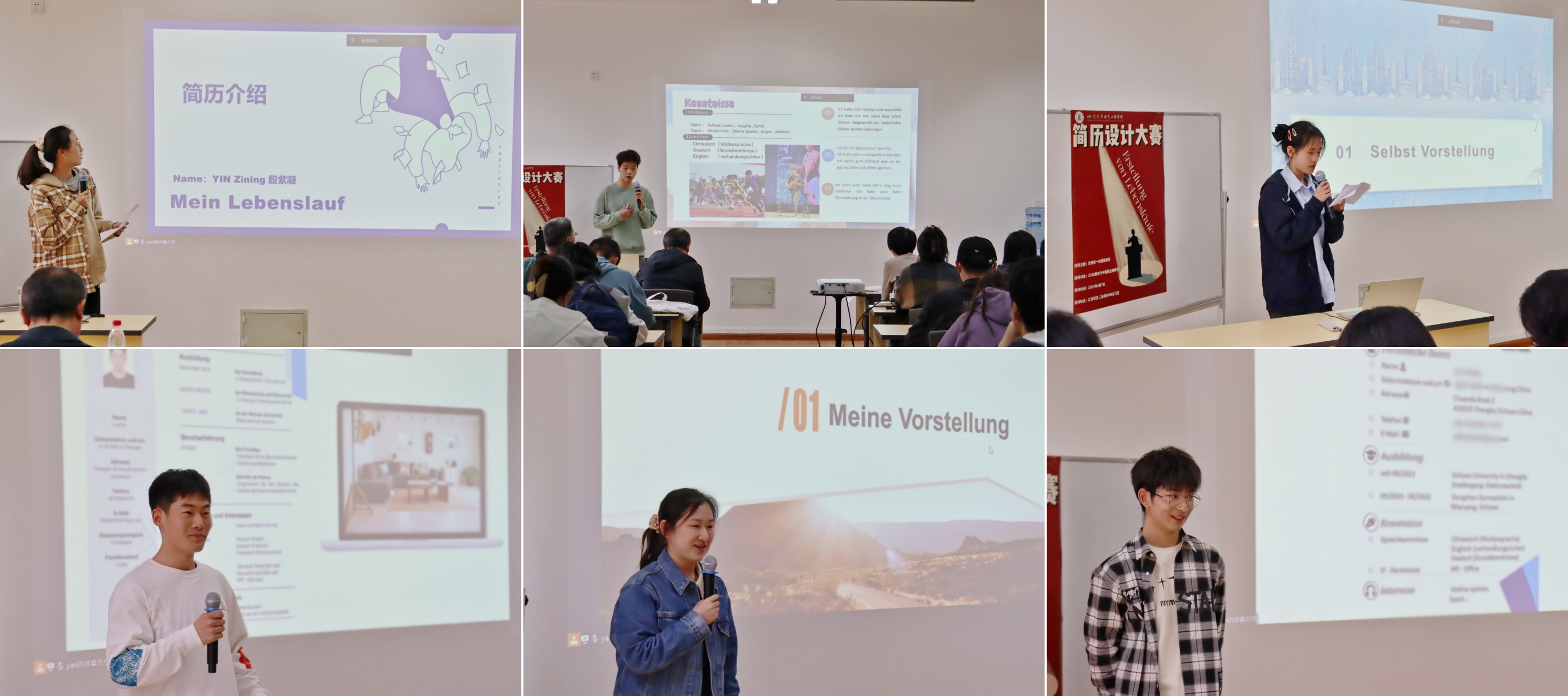 决赛分为德语自我介绍,简历展示说明及评委提问三个环节。评委对参赛选手的简历作品、PPT设计及制作、德语表达能力、演讲能力、临场应变能力等进行打分。