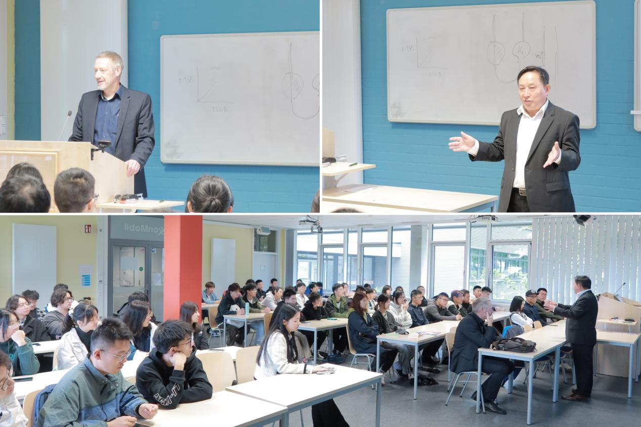 Rembe教授对同学们的到来表示欢迎,同大家介绍了与克大电气工程专业最相关和最重要的四个研究所,包括他们的主要教学、团队力量和研究领域等内容,并鼓励同学们可以通过多种方式与教授们进行交流。侯正猛教授鼓励同学们尽快适应在德国的学习生活,希望同学们在未来的学习中不仅能够学习掌握专业知识,还可以不断提高发现、分析和解决问题的能力。