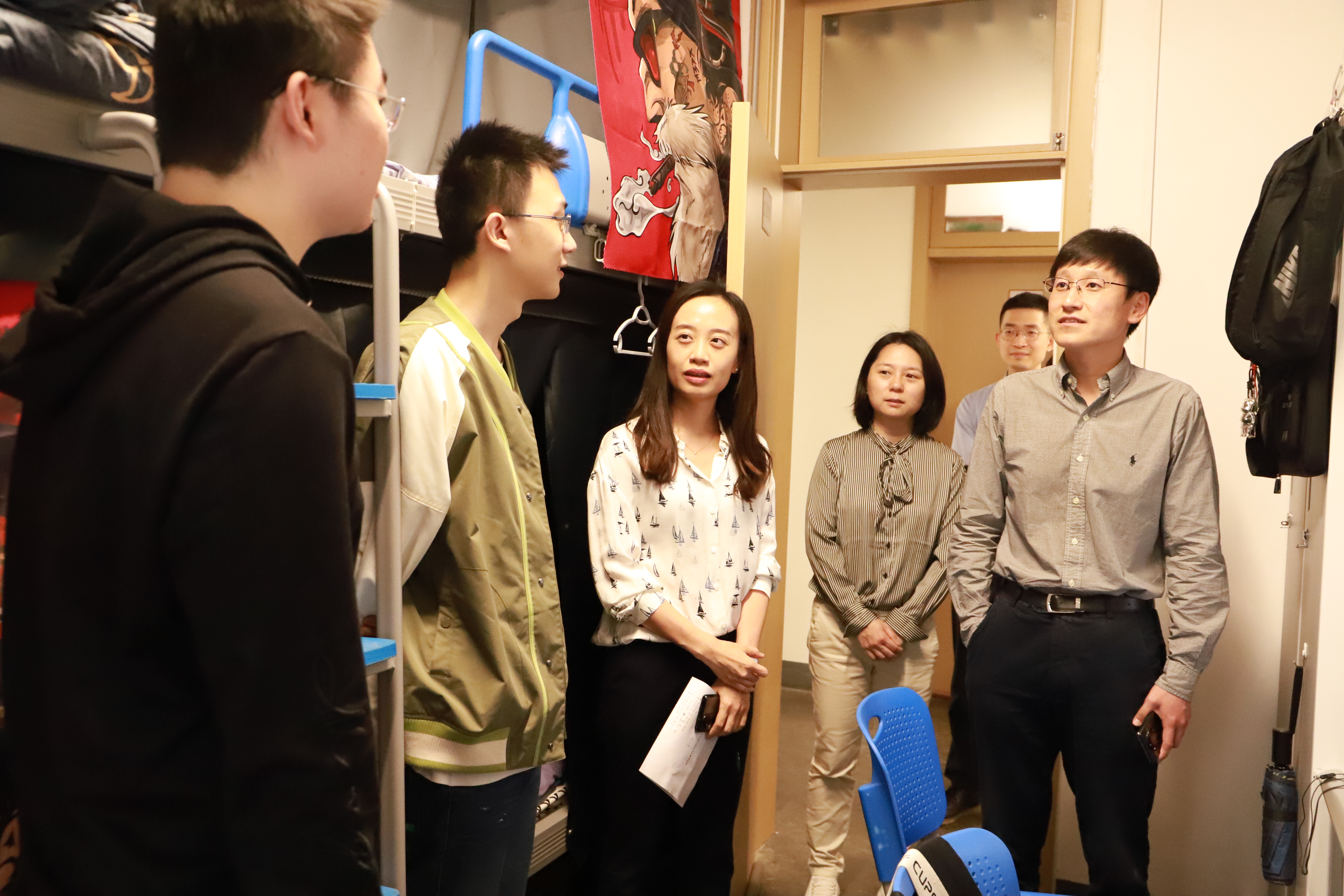 在大三年级员工宿舍,赵昱辉书记详细了解同学们的学习、生活、心理健康等方面情况,并就课程建设、出国交流访学、科研训练、就业拓展等方面问题进行了交流。赵昱辉书记表示,学院会尽可能地为同学们提供更全方位的服务、营造更好的成长环境,希望同学们在生活方面养成良好习惯,在学业方面刻苦努力、志存高远,为未来的职业发展打好坚实基础。