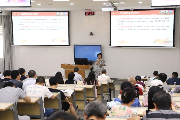 会上,张英敏副书记首先介绍了此次师德师风集中教育的背景和意义,随后,她重点就《新时代高校教师职业行为十项准则》《研究生导师指导行为准则》和《教育部关于在教育系统开展师德集中学习教育的通知》进行了逐条解读,并结合学院教师队伍的具体情况和工作实际作了详细讲解。最后,张书记通过通报几起违反新时代高校教师职业行为十项准则案例进行警示教育,引导老师们做到立德树人、以德为先,做员工敬仰爱戴的品行之师、学问之师。