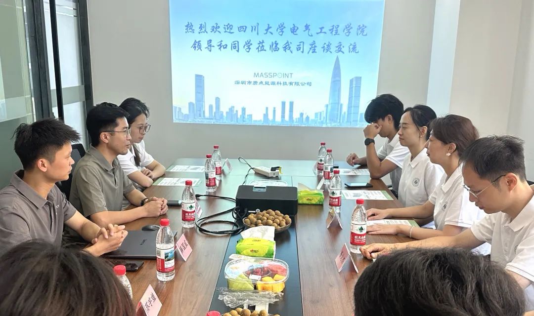 7月24日,实践团走进深圳市质点能源科技有限公司,围绕微电网、储能技术等新能源领域展开深度调研,通过座谈交流和实地参观,探索产学研融合发展路径。