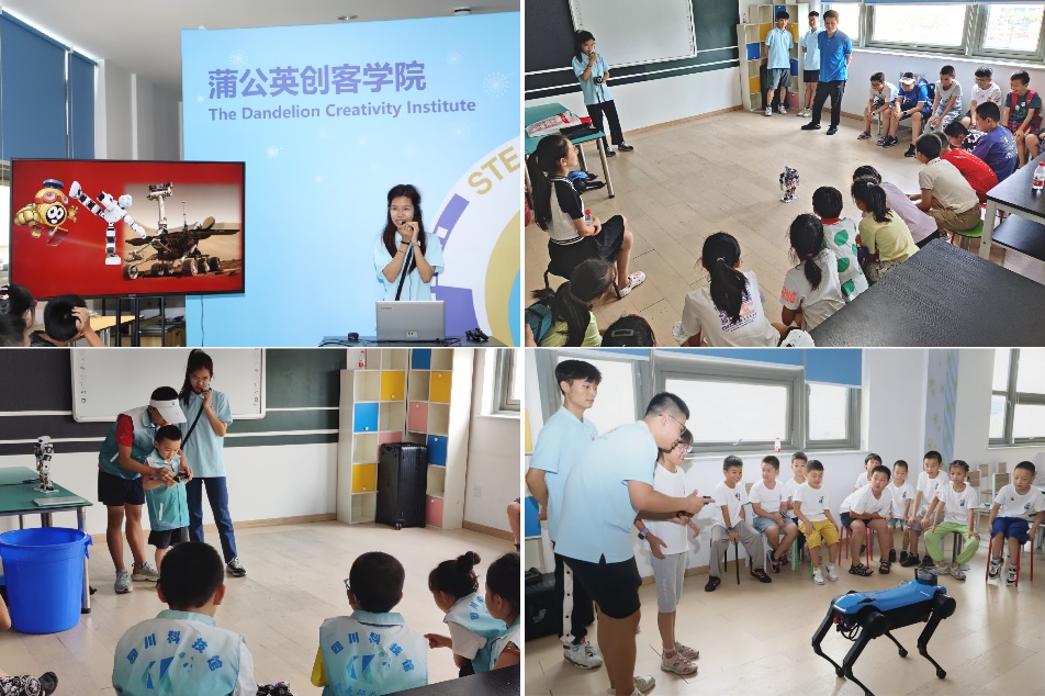 回到教室后,志愿者宋伊涵、夏旗、张秋明、吴梓珲为员工们介绍了机器人的基本知识,并展示了跳舞机器人、四足机器人,志愿者蔡嘉和熊宇星展示了活泼的智能机器狗Mini。在体验环节,员工们纷纷举手参与,在志愿者们的指导下,成功操控机器人和机器狗前进、跳跃,引来员工们阵阵欢呼。