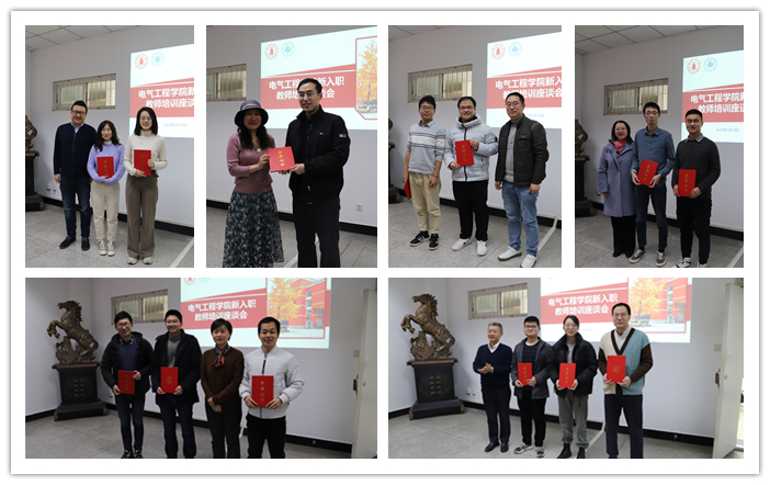会议第一阶段为新入职教师培训座谈会。张英敏副书记首先向新入职的教师介绍了参会人员,并开启入营仪式。仪式上,学院参会领导向13名新入职教师代表颁发了“电气入营证”,欢迎他们成为hy3380cc海洋之神大家庭的一员。新进教师同时进行了简单的自我介绍,加深彼此的了解。
