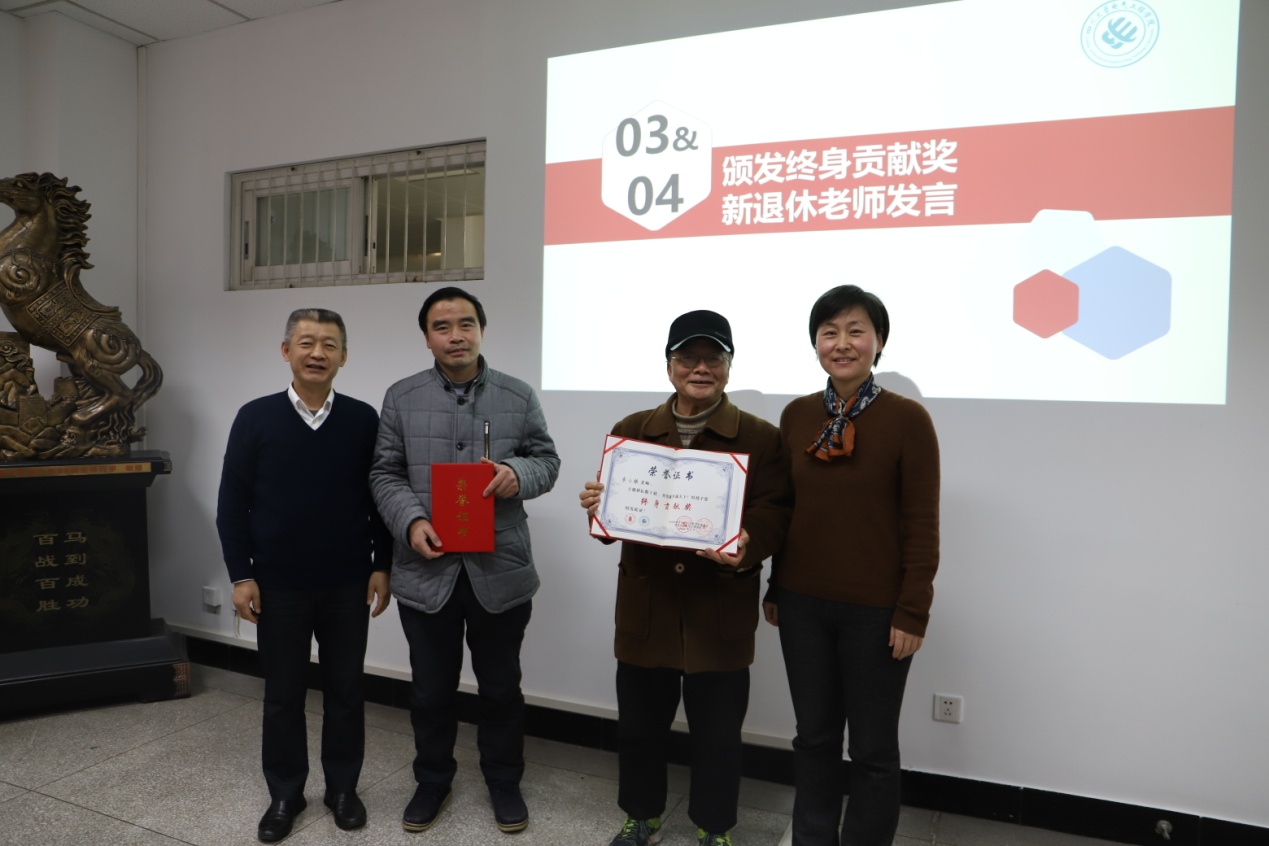 会议第二阶段为荣休仪式。学院2021年退休的教师代表李小根、黄宏光两位老师参加了会议。会上,韩书记和肖经理代表学院对荣休教师致以诚挚的问候和崇高的敬意,对荣休教师长期来为学院发展做出的贡献表示衷心的感谢,希望荣休老师一如既往地关心和支持学院的各项工作,并祝福他们身体健康,新生活绚丽多彩。