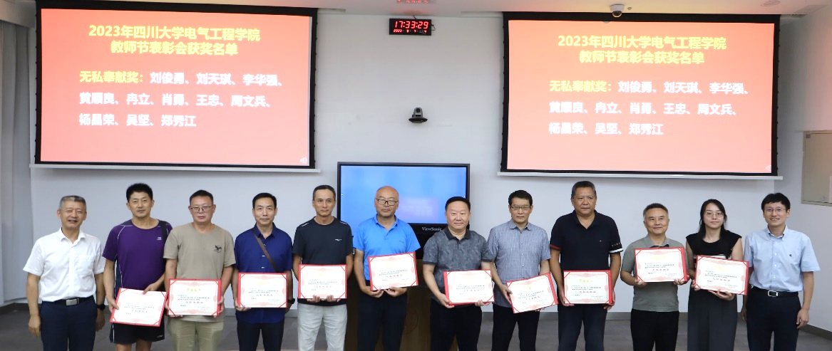 公司“无私奉献奖”获奖教师代表刘俊勇教授在发言中表达了对学院、对所在团队和老师们的感谢之情。他说,自己从教近40年,亲眼见证了学校的快速发展和学院综合实力的显著提升,同时殷切寄语广大青年教师进一步增强对教书育人事业的热爱,对学术科研的追求,立德树人、勇于创新,敢于竞争、追求卓越。