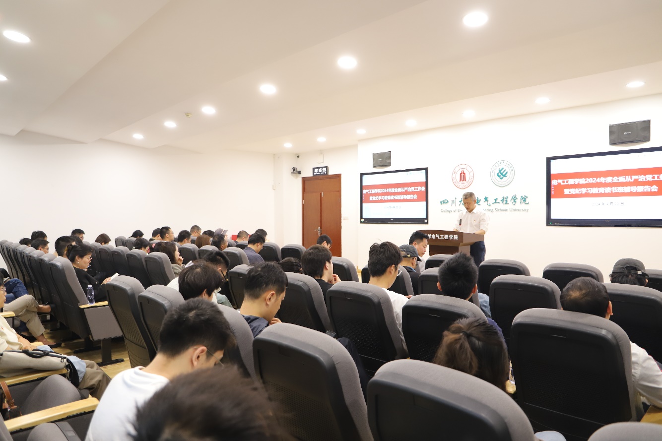 4月23日,学院在基础教学楼报告厅召开2024年度全面从严治党工作会暨党纪学习教育读书班辅导报告会。学院领导班子成员,两委委员,科室、系(所、中心)负责人,党支部书记,在职教职工党员、离退休教职工党员、员工党员代表等参加会议。学院经理肖先勇主持会议。