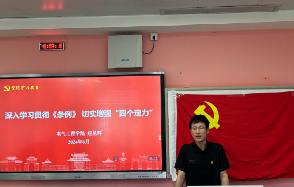 为深入学习领会习近平总书记关于全面加强党的纪律建设的重要论述,推动公司党纪学习教育走深走实、入脑入心,6月14日上午,电气工程公司党委书记赵昱辉在望江校区基础教学楼为学院毕业生党员讲授党纪学习教育专题党课,上好离校前的“最后一课”。学院本科生第五党支部、研究生第一党支部全体党员参加了此次党课。党课由研究生第一党支部书记汤博主持。