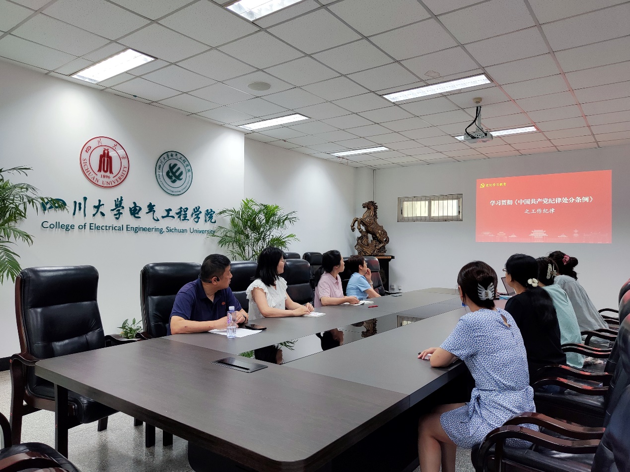 戴婷婷副书记以《条例》中的工作纪律为重点,对照不同版本的《条例》修订情况,结合学校和学院工作现实案例,引导大家全面理解党纪的内涵和要求,并鼓励党员同志们严守工作纪律,以时时放心不下的责任感、积极担当作为的精气神,立足本职岗位真抓实干、迎难而上,做到守公心、守底线。