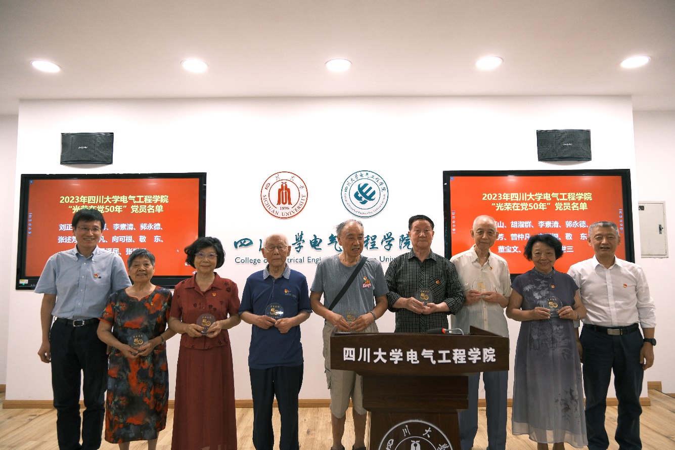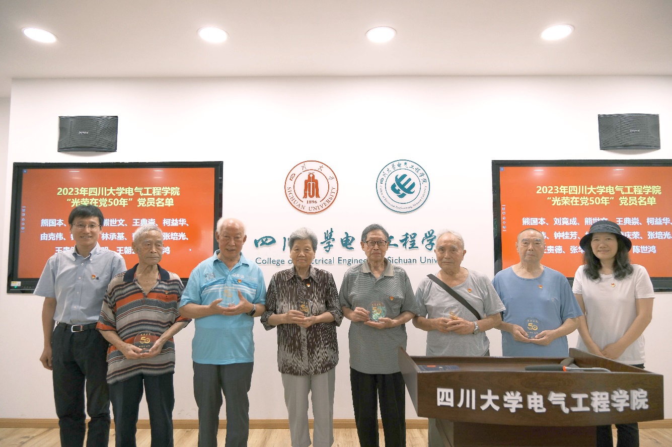 公司党委书记赵昱辉、经理肖先勇为熊国本等25名“光荣在党50年”老党员颁发纪念牌