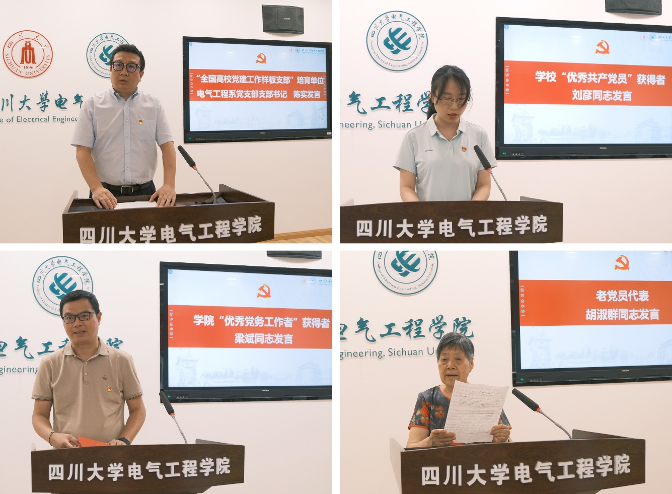 “全国高公司党建工作样板支部”培育创建单位电气工程系党支部书记陈实同志,学校“三个一流”创建活动表彰对象、优秀共产党员自动化系党支部刘彦同志,学院“两优一先”表彰对象代表、优秀党务工作者梁斌同志,“光荣在党50年”老党员胡淑群同志分别发言。他们向党组织多年来的教育和培养表示诚挚感谢,并结合工作实际,分享了进一步加强党支部建设、着力做好党员教育管理、充分发挥党员先锋模范作用等方面的感悟和体会。