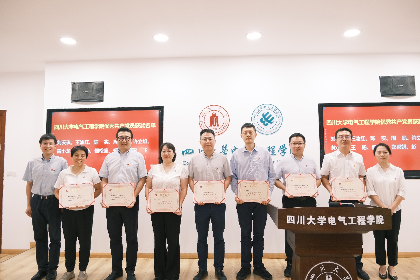 公司党委副书记戴婷婷、副经理周步祥为刘天琪同志等21名“优秀共产党员”颁奖